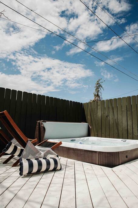 Welcome to Casa Santé! Our two-bedroom home is built for hosting, comfort, relaxation, romantic get away’s and good times with friends & family. Designed with two new bedrooms both featuring Purple memory foam queen mattresses, closets, and space to get ready. An epic front yard fire pit to capture sunsets and enjoy a beverage after a day of local hiking and site seeing. Our backyard is fully fenced and secluded so you can enjoy the jacuzzi and dip pool. Bring a floaty! For our younger guests, we have a pack & play and high chair in the closet. For our earth friendly friends we have a Level 2 EV charger. Our bathroom has a large counter top and a beautiful rain shower head with an optional handheld shower head. Just outside, there's an area with a full-length mirror and plenty of natural light. We provide shampoo, conditioner, hand soap, fresh towels, and toilet paper. The kitchen is fully stocked with everything you need, including local coffee beans and a gorgeous Café stove. There's plenty of room to host and entertain, with a kitchen nook and bar seating. The living room has a couch that seats six and a record player with records, board games, tarot cards, and fun quote games. You can also stream your favorite shows on the 55" flat-screen TV with Roku. Outside, you can take in the stunning valley views from the fire pit in the front yard or lounge in the fully enclosed backyard with outdoor furniture, BBQ grill, and an 8-person vintage camping picnic table. You can also relax in the spa that seats 6 or cool off in the dip pool. The deck is perfect for soaking up the sun and taking in the desert scenery or catch nap in the hammock under the trees. Casa Santé is an ideal space for families, couples, and anyone looking for a memorable or romantic desert getaway. We're committed to ensuring your privacy and providing a space where you can make lasting memories. Thank you for considering our home for your stay.