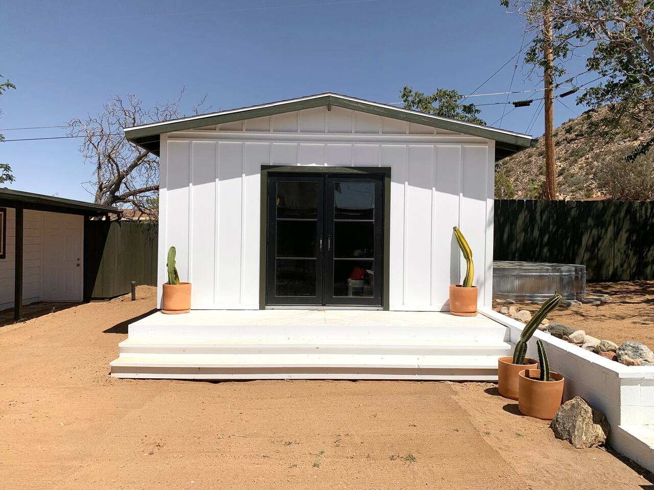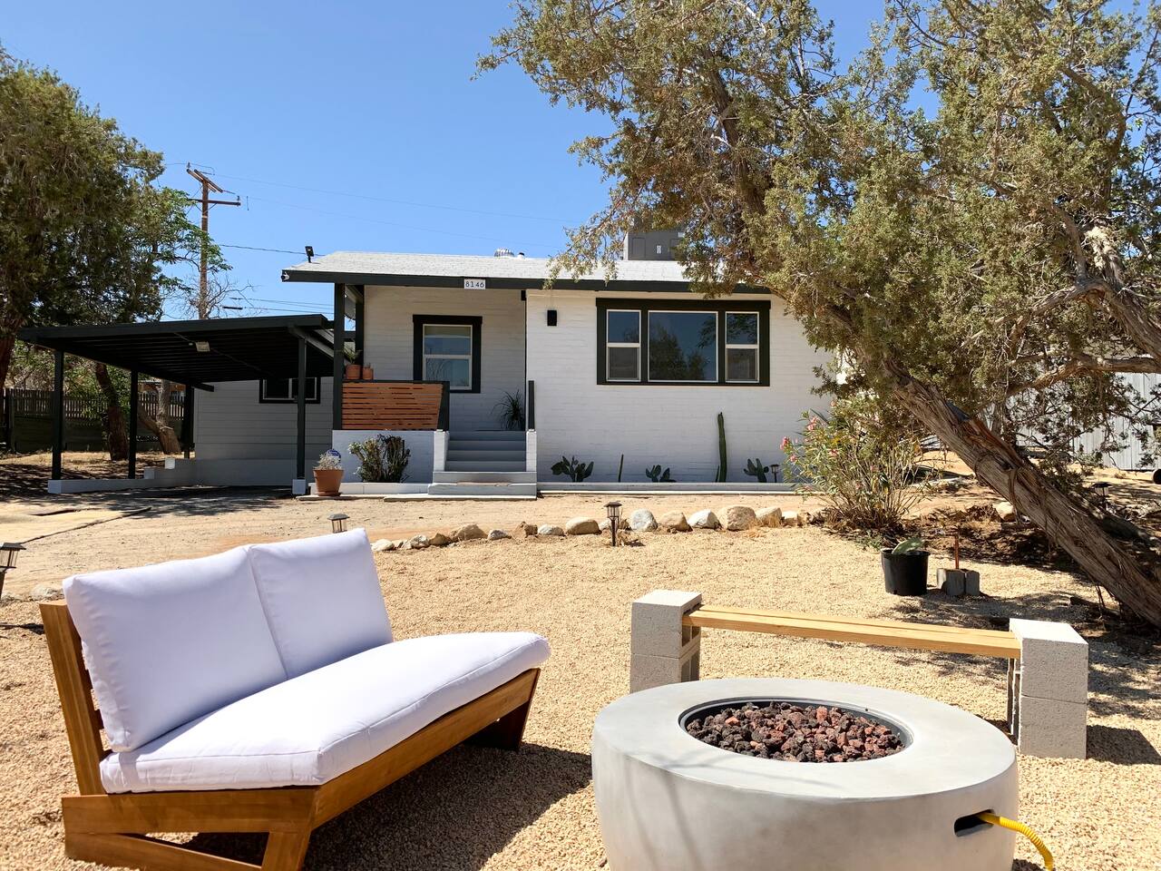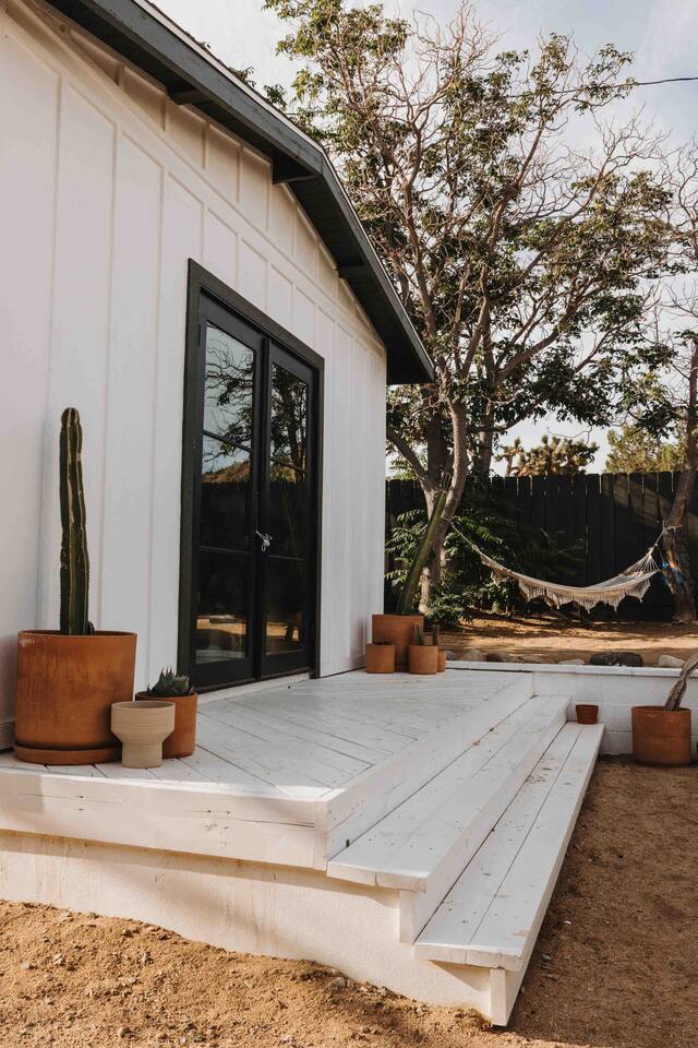 Escape to Casa Santé a 2 bedroom 1 bath home nestled at the base of the mountains in Yucca Valley. Relax outside by the fire pit, new dip pool, & spa. Grill under the stars & bask in the Joshua Trees. Enjoy stunning mountain & valley views from the kitchen and living room. The home is tucked up a short dirt road offering a remote escape while only being 10 minutes from downtown Yucca. The home has been completely renovated in 2022 & we are excited to welcome you to our boutique home get away.