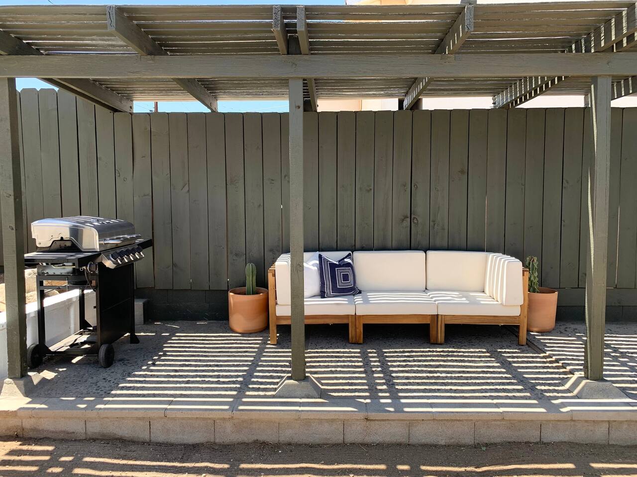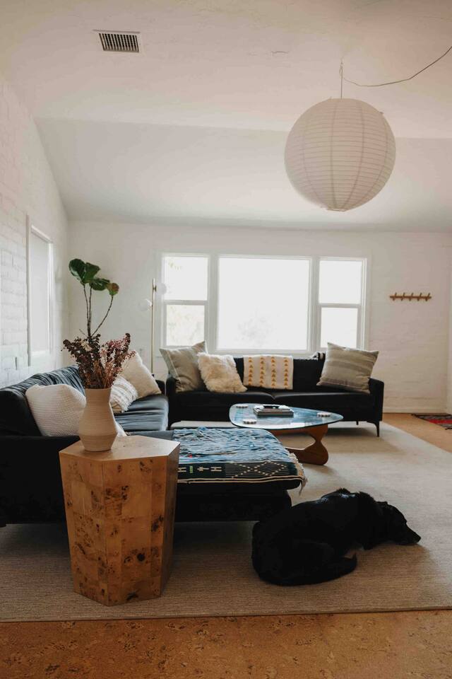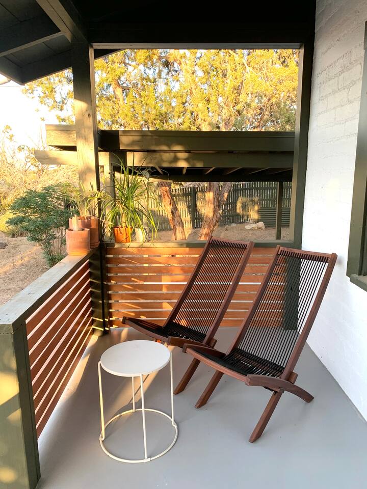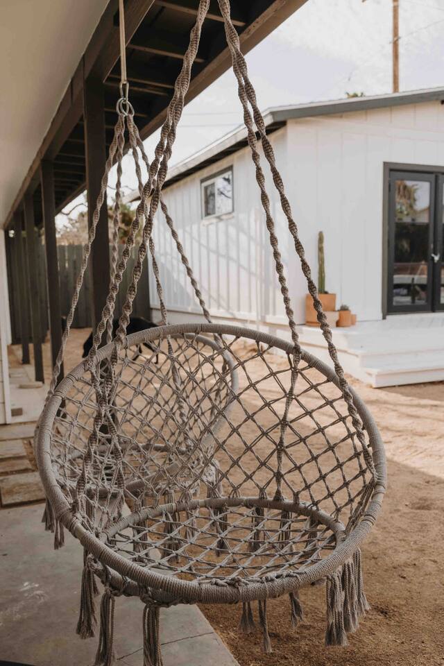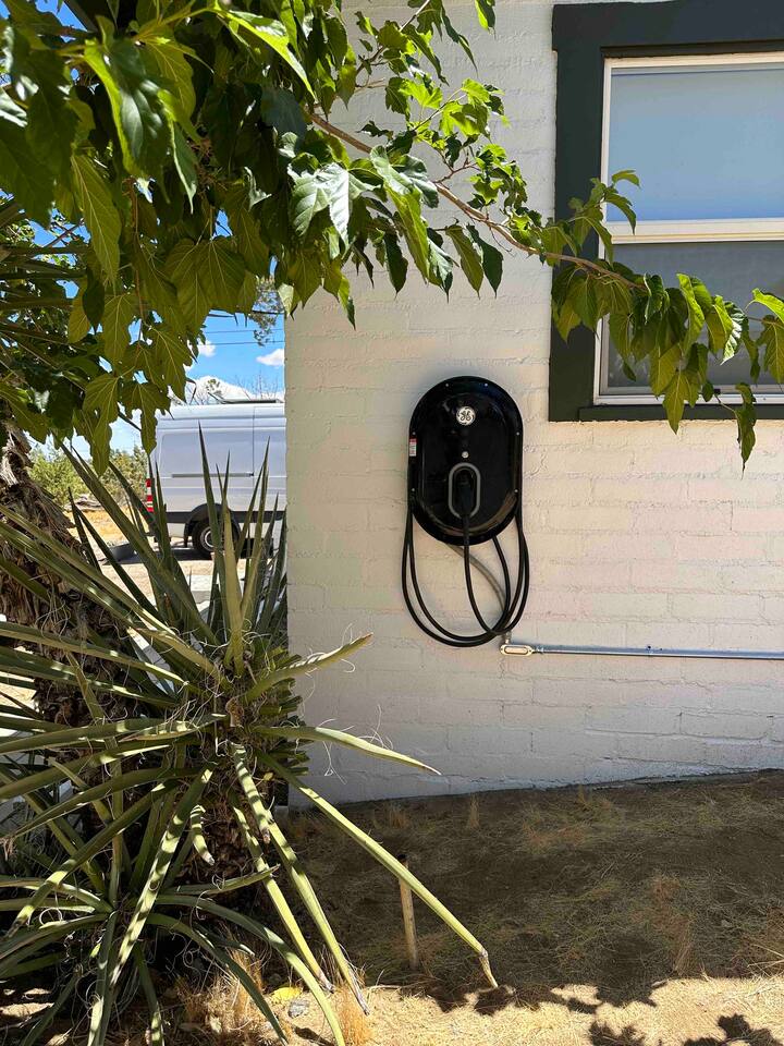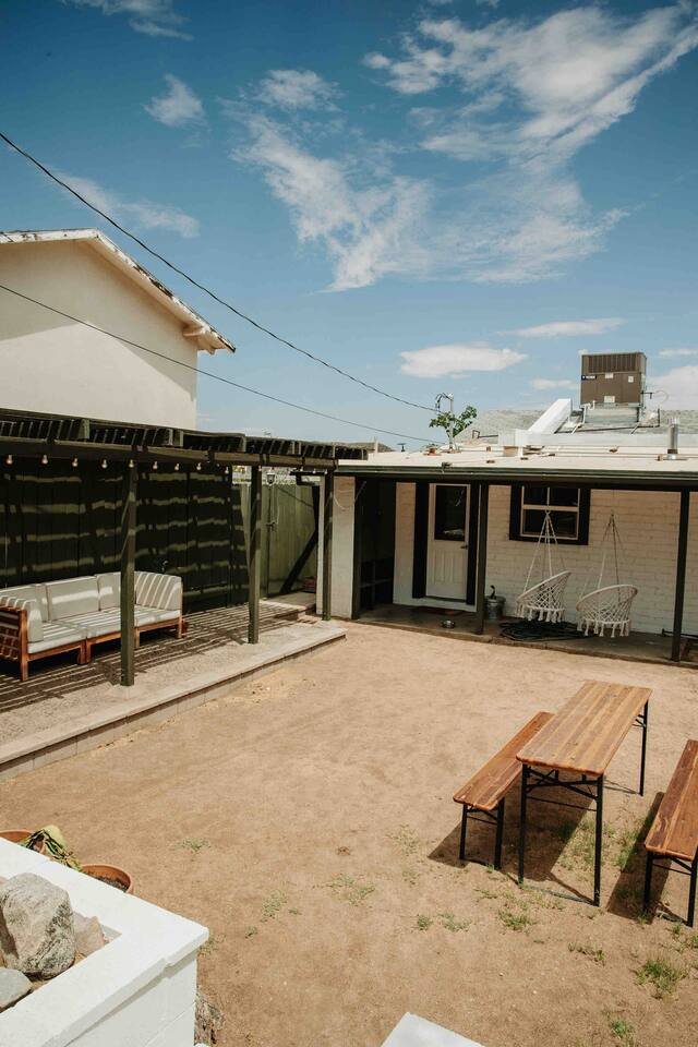 Welcome to Casa Santé! Our two-bedroom home is built for hosting, comfort, relaxation, romantic get away’s and good times with friends & family. Designed with two new bedrooms both featuring Purple memory foam queen mattresses, closets, and space to get ready. An epic front yard fire pit to capture sunsets and enjoy a beverage after a day of local hiking and site seeing. Our backyard is fully fenced and secluded so you can enjoy the jacuzzi and dip pool. Bring a floaty! For our younger guests, we have a pack & play and high chair in the closet. For our earth friendly friends we have a Level 2 EV charger. Our bathroom has a large counter top and a beautiful rain shower head with an optional handheld shower head. Just outside, there's an area with a full-length mirror and plenty of natural light. We provide shampoo, conditioner, hand soap, fresh towels, and toilet paper. The kitchen is fully stocked with everything you need, including local coffee beans and a gorgeous Café stove. There's plenty of room to host and entertain, with a kitchen nook and bar seating. The living room has a couch that seats six and a record player with records, board games, tarot cards, and fun quote games. You can also stream your favorite shows on the 55" flat-screen TV with Roku. Outside, you can take in the stunning valley views from the fire pit in the front yard or lounge in the fully enclosed backyard with outdoor furniture, BBQ grill, and an 8-person vintage camping picnic table. You can also relax in the spa that seats 6 or cool off in the dip pool. The deck is perfect for soaking up the sun and taking in the desert scenery or catch nap in the hammock under the trees. Casa Santé is an ideal space for families, couples, and anyone looking for a memorable or romantic desert getaway. We're committed to ensuring your privacy and providing a space where you can make lasting memories. Thank you for considering our home for your stay.