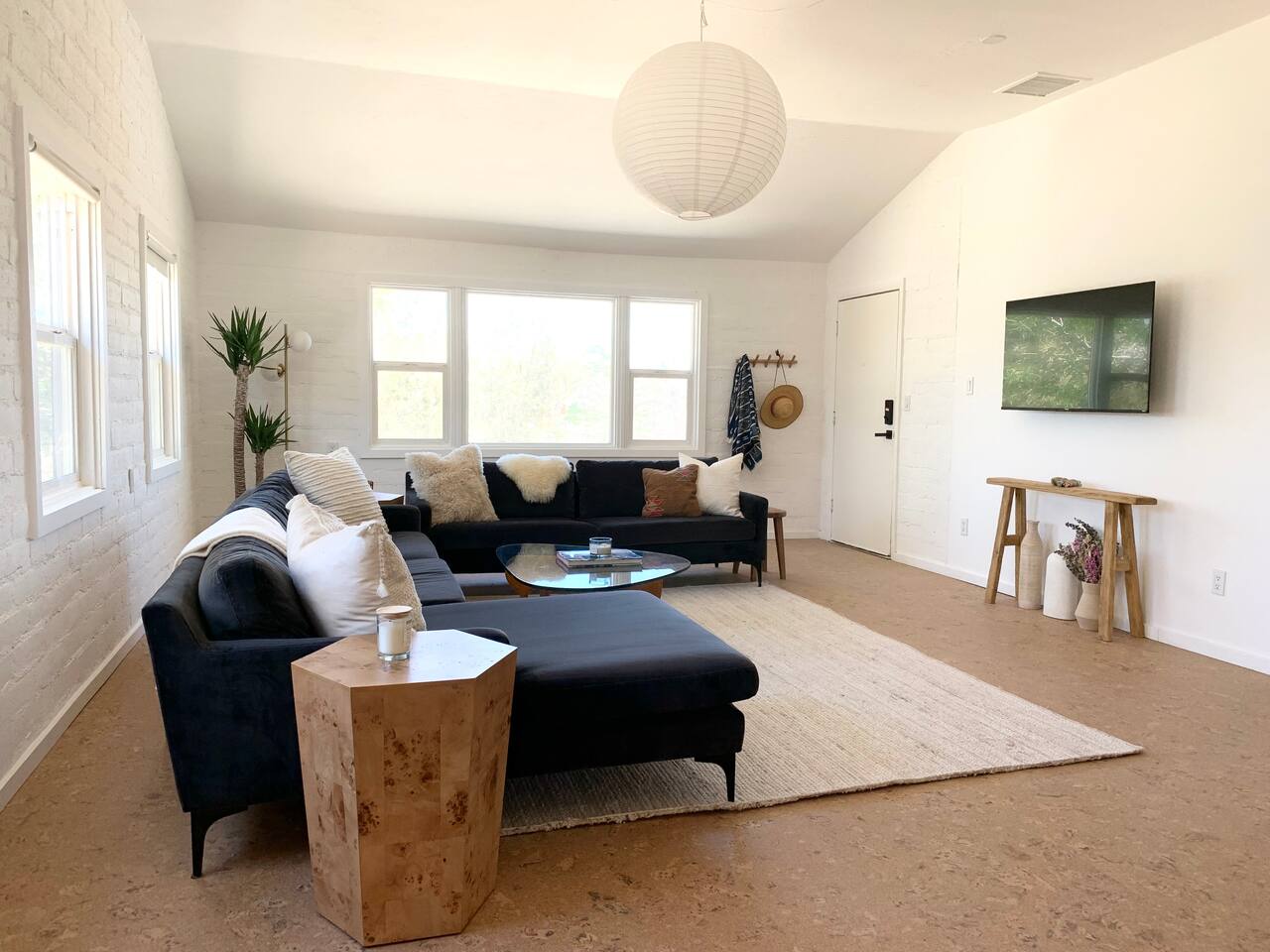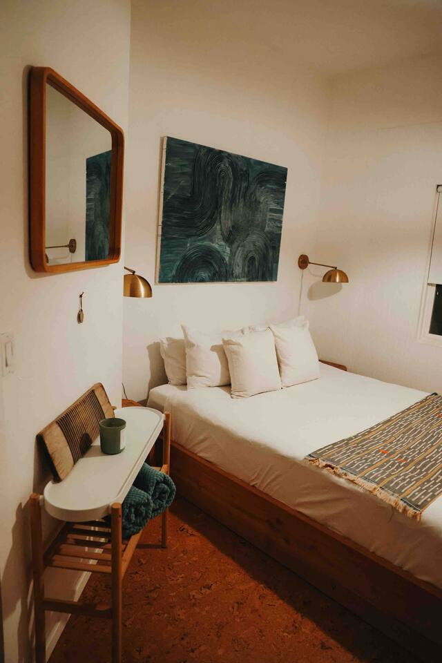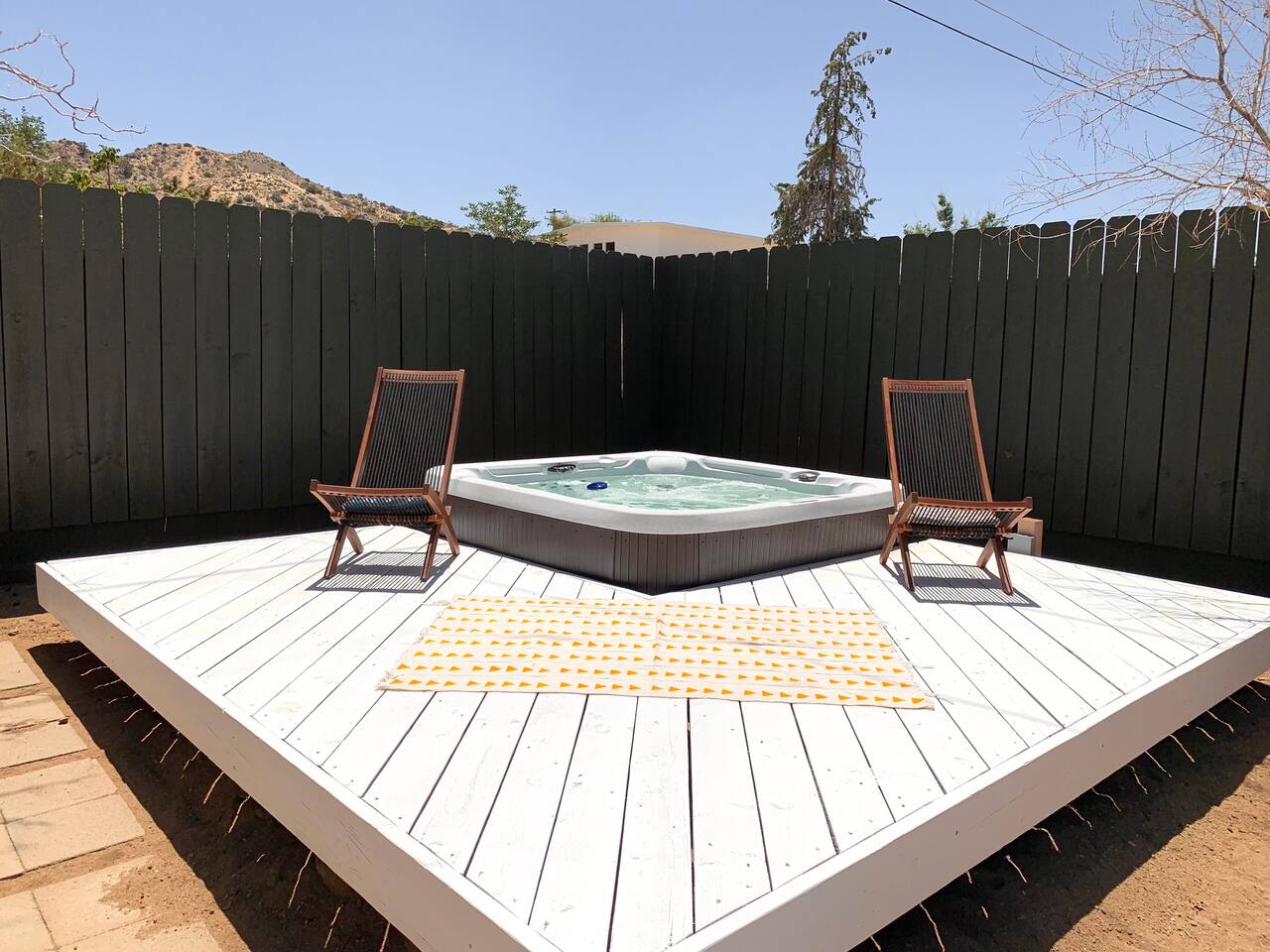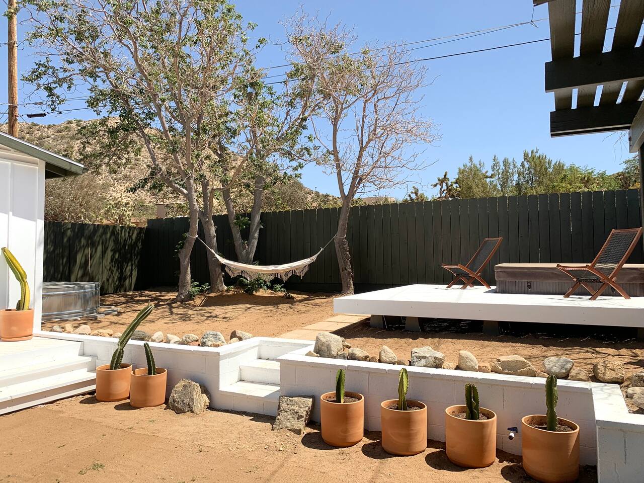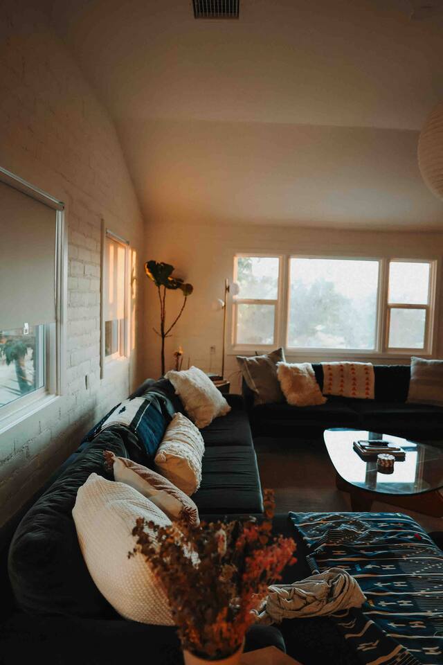 Welcome to Casa Santé! Our two-bedroom home is built for hosting, comfort, relaxation, romantic get away’s and good times with friends & family. Designed with two new bedrooms both featuring Purple memory foam queen mattresses, closets, and space to get ready. An epic front yard fire pit to capture sunsets and enjoy a beverage after a day of local hiking and site seeing. Our backyard is fully fenced and secluded so you can enjoy the jacuzzi and dip pool. Bring a floaty! For our younger guests, we have a pack & play and high chair in the closet. For our earth friendly friends we have a Level 2 EV charger. Our bathroom has a large counter top and a beautiful rain shower head with an optional handheld shower head. Just outside, there's an area with a full-length mirror and plenty of natural light. We provide shampoo, conditioner, hand soap, fresh towels, and toilet paper. The kitchen is fully stocked with everything you need, including local coffee beans and a gorgeous Café stove. There's plenty of room to host and entertain, with a kitchen nook and bar seating. The living room has a couch that seats six and a record player with records, board games, tarot cards, and fun quote games. You can also stream your favorite shows on the 55" flat-screen TV with Roku. Outside, you can take in the stunning valley views from the fire pit in the front yard or lounge in the fully enclosed backyard with outdoor furniture, BBQ grill, and an 8-person vintage camping picnic table. You can also relax in the spa that seats 6 or cool off in the dip pool. The deck is perfect for soaking up the sun and taking in the desert scenery or catch nap in the hammock under the trees. Casa Santé is an ideal space for families, couples, and anyone looking for a memorable or romantic desert getaway. We're committed to ensuring your privacy and providing a space where you can make lasting memories. Thank you for considering our home for your stay.